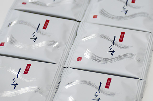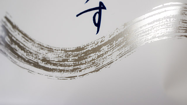 しらすの美しさと、動を表現したかったので、筆で波を描いている。