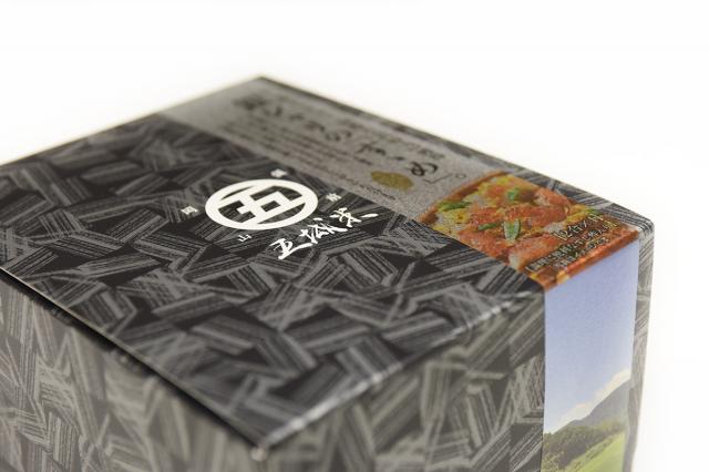 | 五城米 銀シャリの「すゝめ」 岡山御津地区のみで栽培される五城米。 この米が「すし米コンテスト・国際大会で特Aを獲得。 自宅で手軽に美味しいすし飯を作ってもらいたいと考えた企画。 汎用で使える「2合*4個」が入る箱。 安く見せないために、弾きニス、部分コーターニスを使用し上品かつ力強さをひめたデザインにした。 ネーミングも特徴を最大限に引き出し、インパクトを与えるものを考えた。 今後「すゝめ」シリーズができたときのことも考えている。 帯も銀色の帯を使用することで高級感をさらに演出している。 ad 守屋心二 d 守屋心二 lo 守屋心二 cl 五城米 ✔ ネーミング ✔ デザイン ✔ 企画/立案 ✔ 包装資材提供 ✔ ブランディング ✔ イラスト/筆 ✔ ロゴ/シンボルマーク | ![]() ![]() ![]() 五城米の部分は部分コーターニスで「テカリ」を |